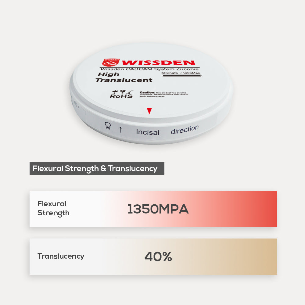 HT is a white dental zirconia with very high flexural strength (1350 MPa) for the fabrication of single tooth up to multi-unit bridge frameworks.